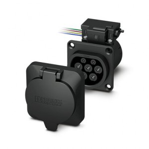 CHARX connect,充電樁充電插座套件,用于使用交流電 (AC) 為電動(dòng)汽車 (EV) 充電,可反復(fù)連接,帶可消除應(yīng)力并提供防觸電保護(hù)的保護(hù)蓋,2類,IEC 62196-2,32 A / 480 V (AC),不帶電纜,電子鎖: 12 V,4位,板后安裝,M5螺紋,B線,外殼: 黑色,菲尼克斯電氣標(biāo)識(shí)