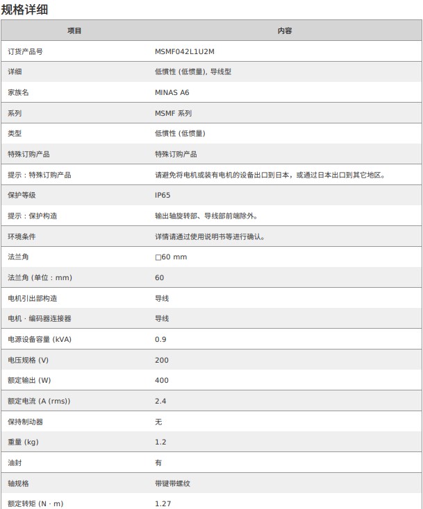 松下伺服電機 MSMF低慣量電機MSMF042L1U2M 50W-22kW 響應頻率3.2kHz