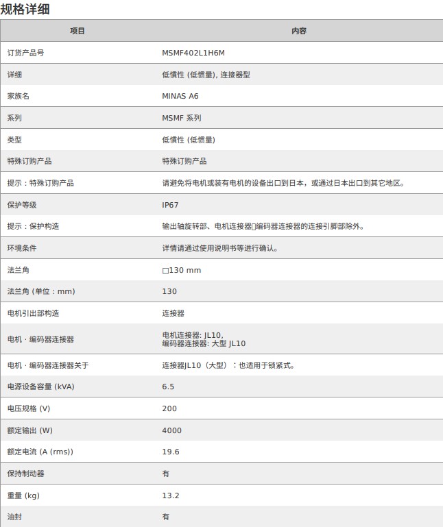 松下伺服電機 MSMF低慣量電機MSMF402L1H6M 50W-22kW 響應頻率3.2kHz