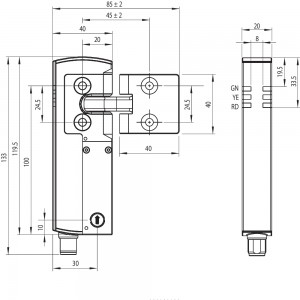 施邁賽電磁安全鎖AZM系列的設計意圖在于:結合機器的控制部件(如自動防故障延時、防故障靜態監控等),防止可移動安全防護裝置,如圍欄、鉸鏈或門,在危險條件尚未排除的情況下(如運行時)被開啟。