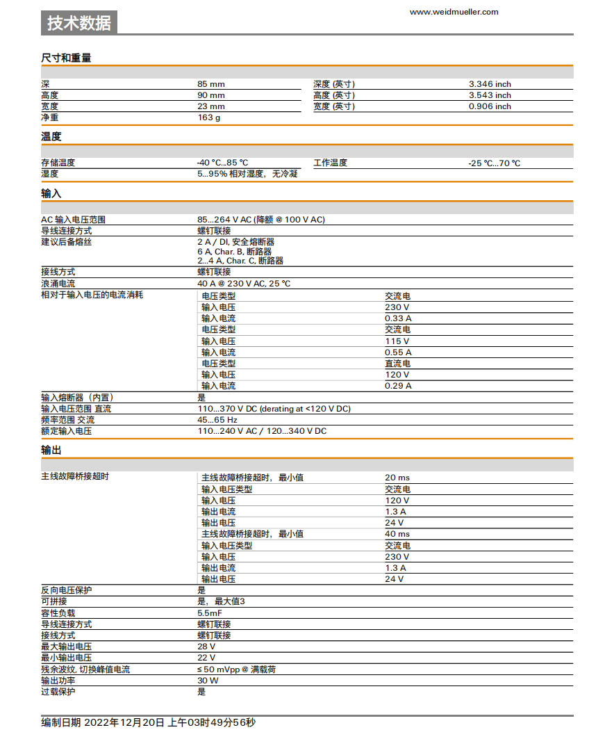 魏德米勒 開關(guān)電源 PRO BAS 30W 24V 1.3A 訂貨號2838500000 |