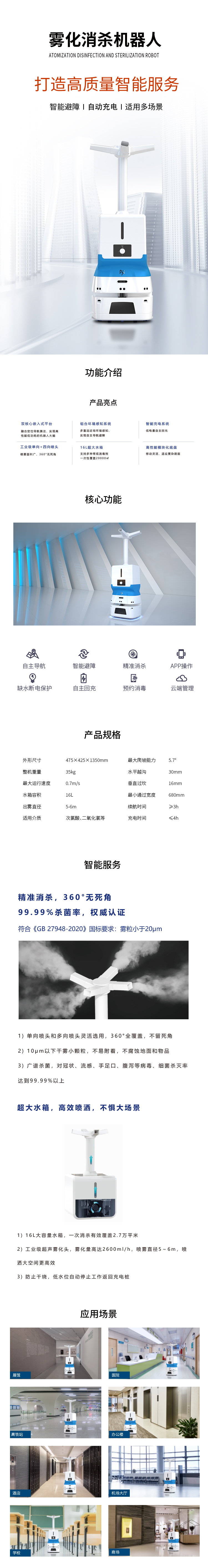 TE100S是一款智能霧化消毒機器人,通過噴灑霧化消毒液,**全面消殺新冠等多種常見病菌,殺菌率達到99.99%。能實現APP操作,自主導航,預約消毒等功能,方便**,實現24小時循環查殺。可應用于機場、高鐵、客運站、學校、酒店等場景,提高360°全覆蓋消毒,降低人力成本。
