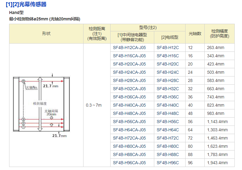 檢測(cè)距離 (注1) (有效距離: 0.3~7m