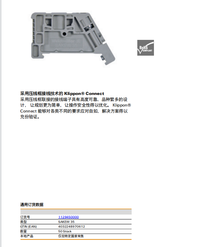 Weidmuller SAKEW 35 魏德米勒 接線端子固定塊 訂貨號1129450000 |