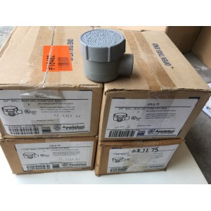| 28 | Conduit Outlet Box | GRJL75 | EA | 26 | Appleton GRJC75 Conduit Outlet Box, Type GRJC, (2) 3/4" Hubs, Malleable,Includes: Internal Ground Screw and O-Ring, Internally Threaded Surface Cover with 2.13 Inch Opening, 7.3 Cubic Inches and (2) 3/4 Inch Threaded Hubs. For use with Threaded |