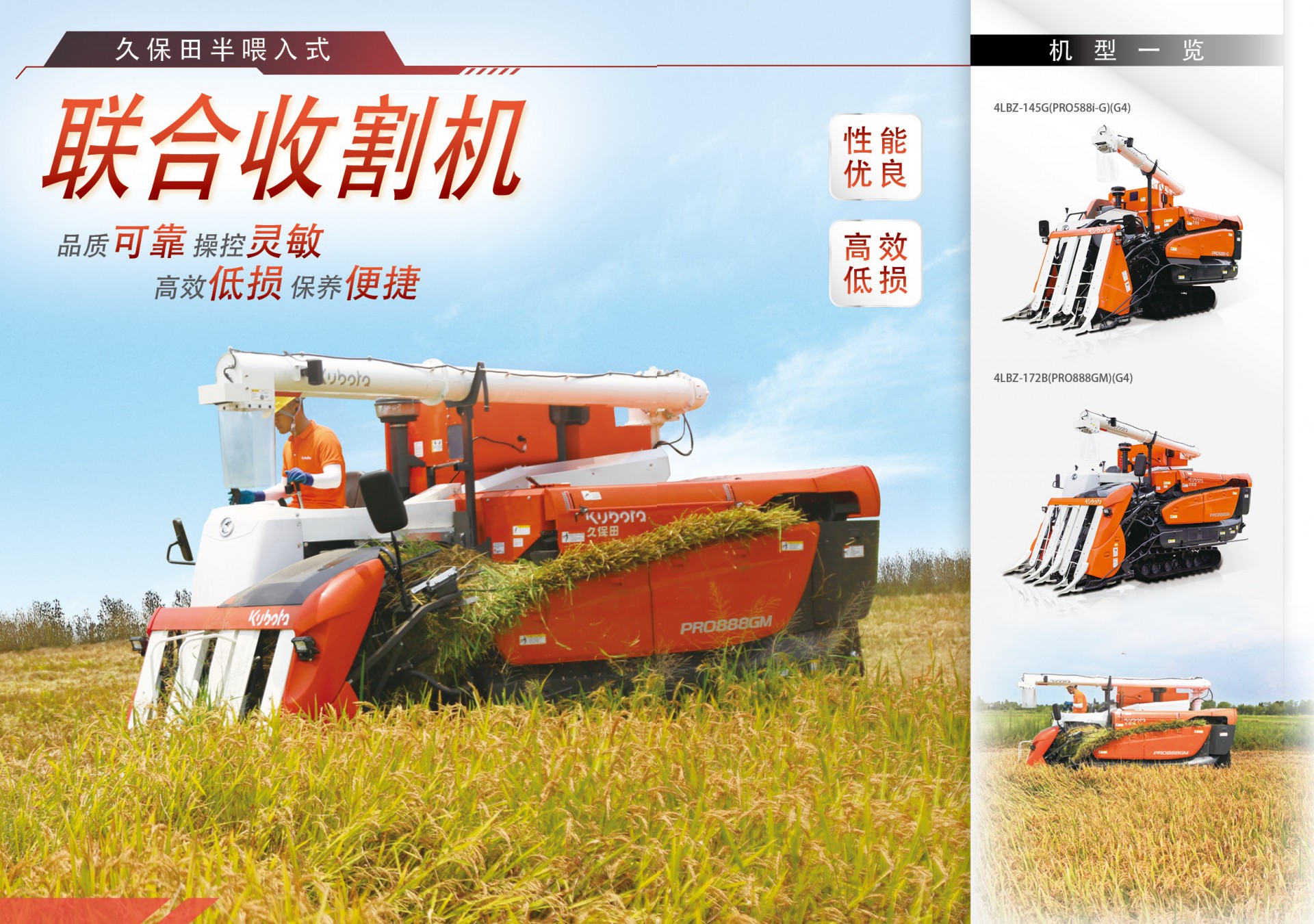 久保田半喂入式聯(lián)合收割機 品質(zhì)可靠 靈敏低損 保養(yǎng)便捷