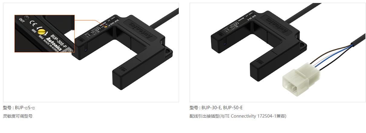 U型光電傳感器BUP系列提供30mm、50mm檢測距離型號,靈敏度可調,擴展了各種應用的靈活性。