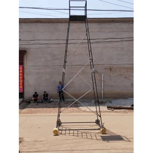 梯身及底架均可快速分解,便于搬遷。帶有防制動器,既防傾倒,又便于在斜道上作業。工作臺可以調節高度,三擋調節, 便于運輸梯車高度用戶可根據情況自行確定。