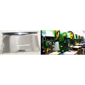 - 2臺RB08搬運機器人,2套雙工位柔性手抓,自動分張上料機,下料輸送線,配套63噸沖床,完成毛坯分張上料、切邊、責型、成型生產,及成品下線集中收集;