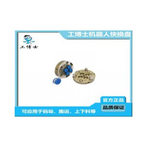 機器人快換裝置,又叫機器人快換盤、換槍盤、快換工具盤、快速更換器、快換器、 快換夾具、治具快換等,它是工業機器人行業使用在末端執行器的一種柔性連接工具。工業機器人快換盤是高性能工業機器人系統上主要的組成部分,能夠是機器人充分發揮性能,完成多種作業,提高機器人的性價比。機器人快換盤包括一個機器人側(主盤)用來安裝在機器人手臂上,還包括一個工具側(副盤)用來安裝在末端執行器上。工具快換裝置能夠讓不同的介質如:壓縮空氣、電信號、液體、視頻、超聲等從機器人手臂連通到末端執行器。