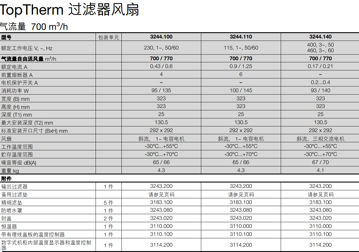 威圖機柜風扇Rittal過濾器風扇氣流量700/770m³/h型號3244.100顏色RAL7035