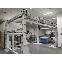 - 1臺RB165機器人,匹配專用的大型可調節雙工位吸盤抓手,實現不同來料毛坯取放料;