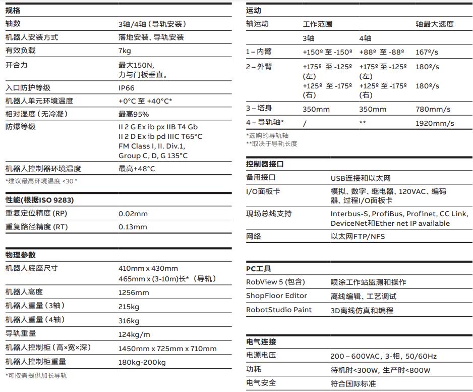 • IRB 5350開門機器人及ABB噴涂機器人、通用備件、 接口等均可由機器人控制柜IRC5P操控;