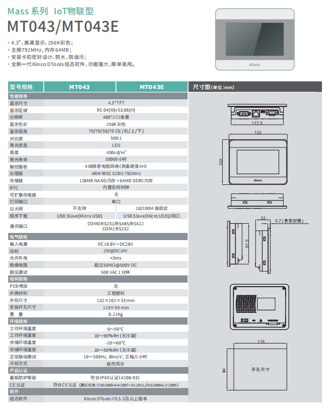 kinco步科4.3寸觸摸屏MT043/MT043E