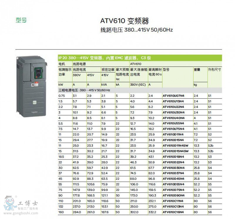 施耐德ATV610變頻器 ATV610U75N4 7.5KW C3級EMC濾波器