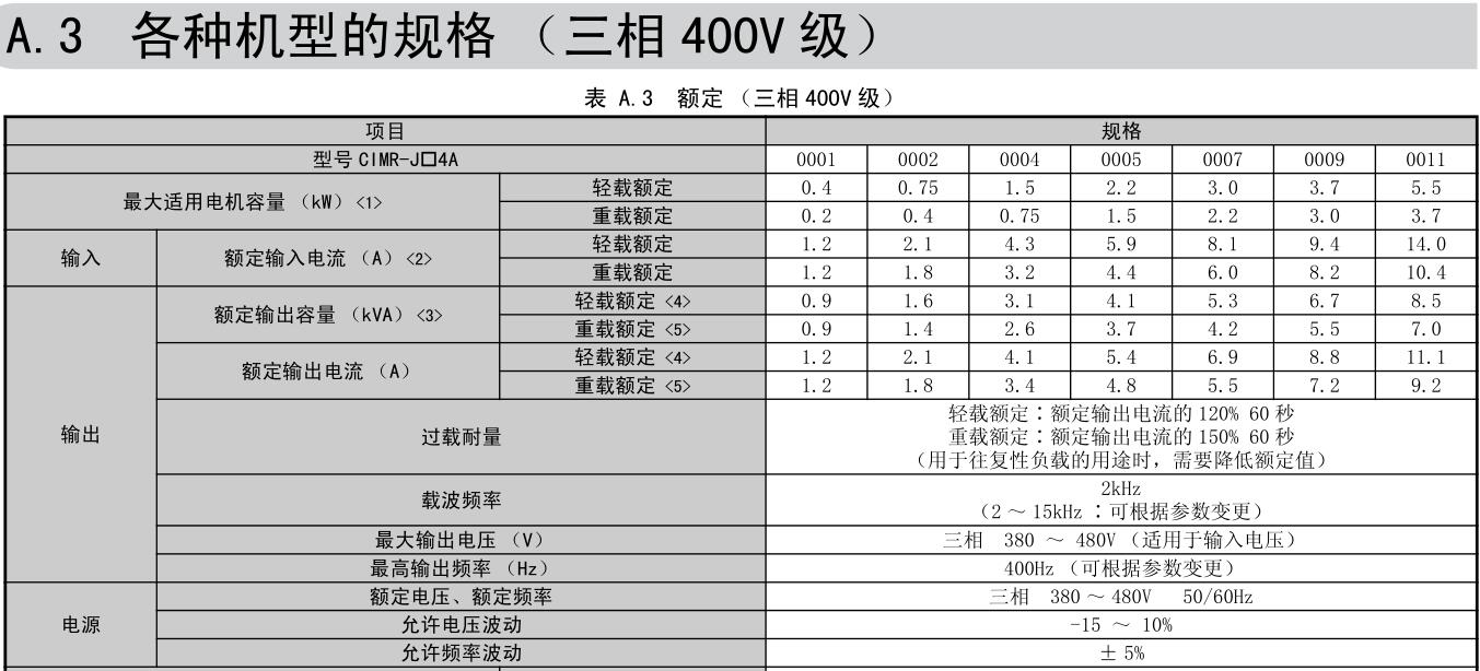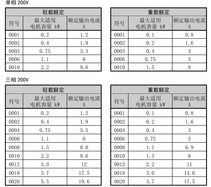 容量范圍 200V級(三相電源用)0.1~5.5kW