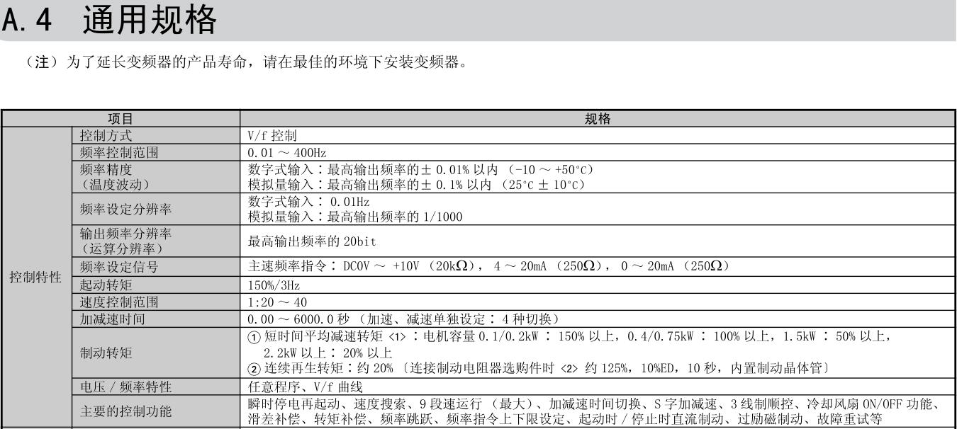 由于有過勵磁制動功能,即使無制動電阻也能緊急制動。并且全機型內置制動晶體管,只要增加制動電阻,就能得到很大的制動力。