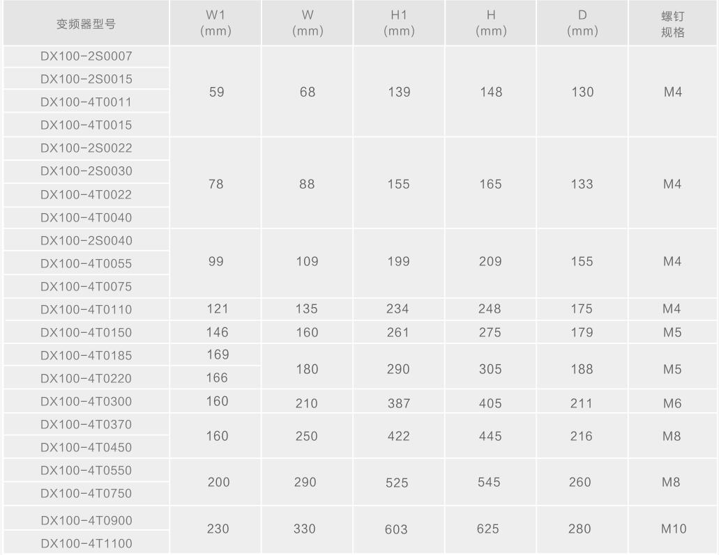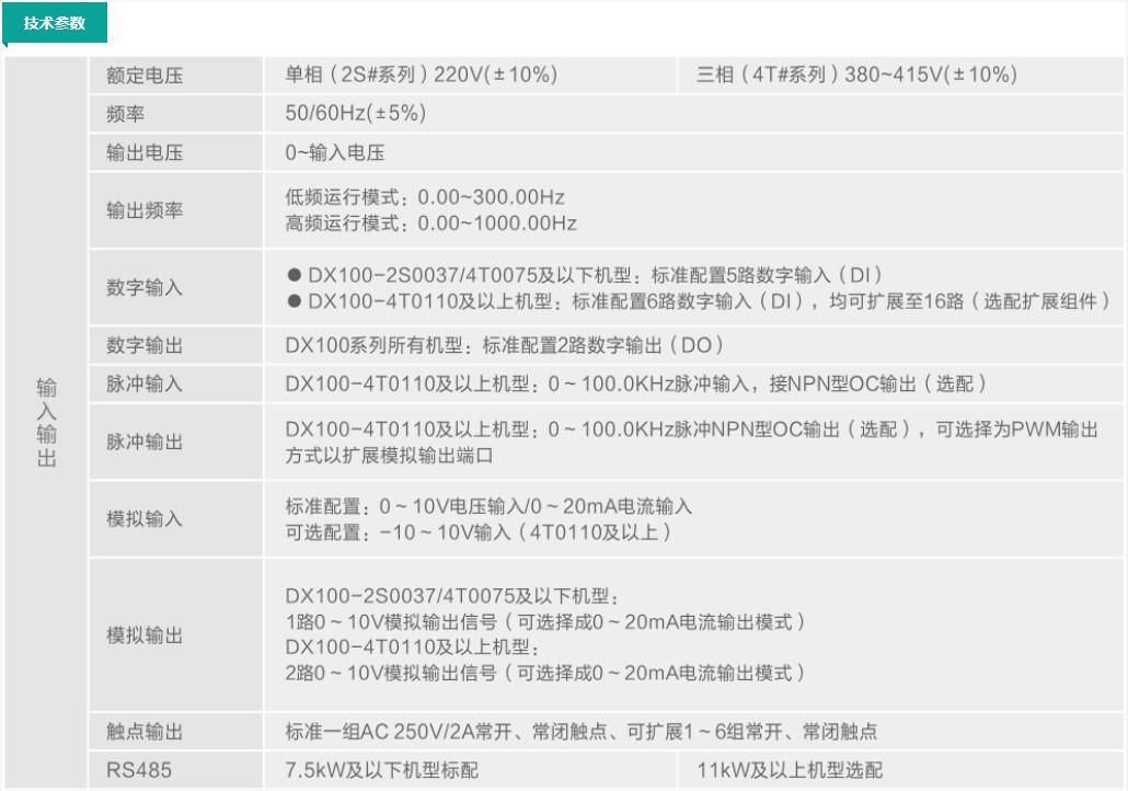 DX100系列為公司打造的新一代面向市場的矢量型通用變頻器。其穩定性更高、功能更齊全,小巧的機身使其裝配更簡單,能覆蓋更多對機器結構有要求的客戶。同時DX100系列全面繼承公司**變頻器的矢量控制、V/F控制算法,以及靈活的參數配置、豐富多樣的擴展接口、上百種警告與報警,是一款性能優越、保護功能齊全的矢量型通用變頻器。