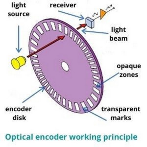 轉換采用了光電掃描原理。讀數系統是基于徑向分度盤的旋轉,該分度由交替的透光窗口和不透光窗
