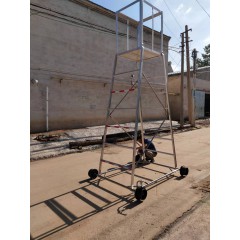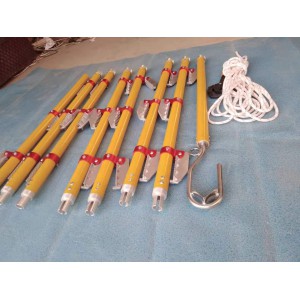 4.    接完后:用風繩栓在鉤一側的環內,一人穩住底部,一人拉繩,一到二人往起立,根據梯子的長短限定人數,立起后把掛鉤勾在承力索或其它能固定的地方。