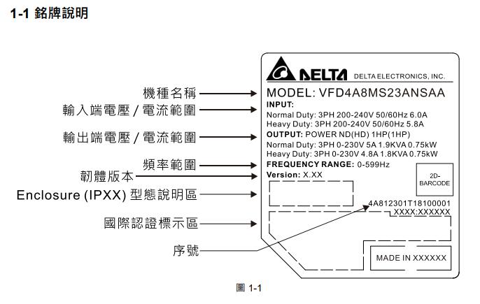 VFD2A8MS21ENSAA 1P230V,0.4kW,IP40,內置剎車單元,無內置濾波器,內置PLC