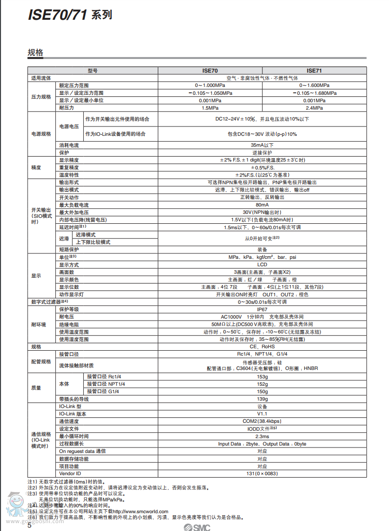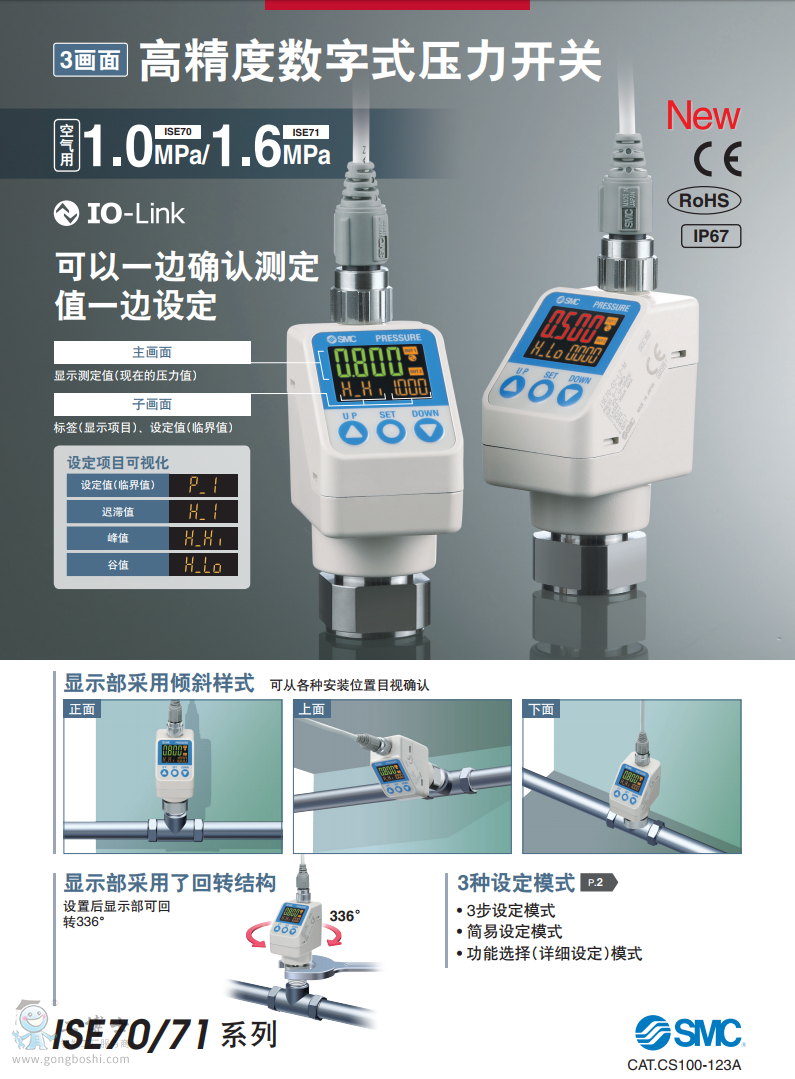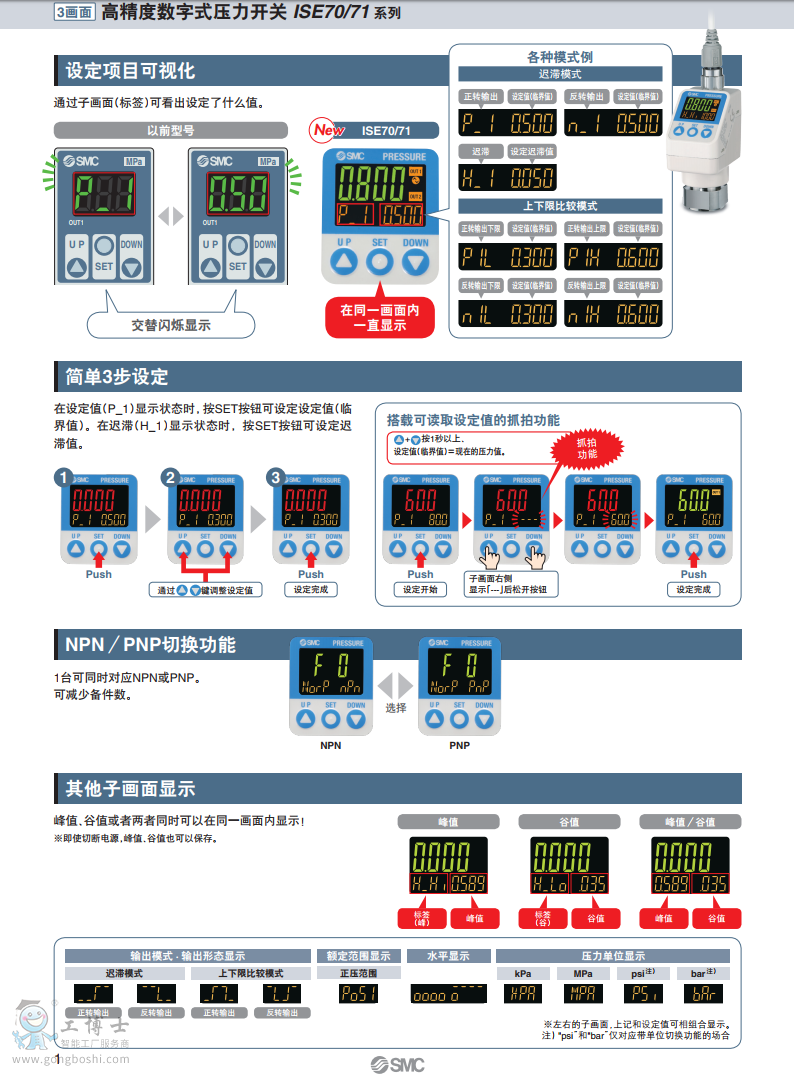 SMC 3畫面高精度數字式壓力開關 ISE70/71