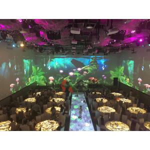 如:原始森林、海底世界、浪漫花海、實現(xiàn)各個場景的瞬間切換置身其中,改變了傳統(tǒng)宴會廳道具固定的形式,為宴會廳實現(xiàn)了各種場景變換的可能。運用全息影像技術(shù)做出逼真的舞臺立體投影效果,并達(dá)到身臨其境的感覺,讓現(xiàn)場來賓無不沉醉其中。客戶可以近距離感受聲、光、電融合的視覺盛宴,如同置身于一場華麗的電影之中。