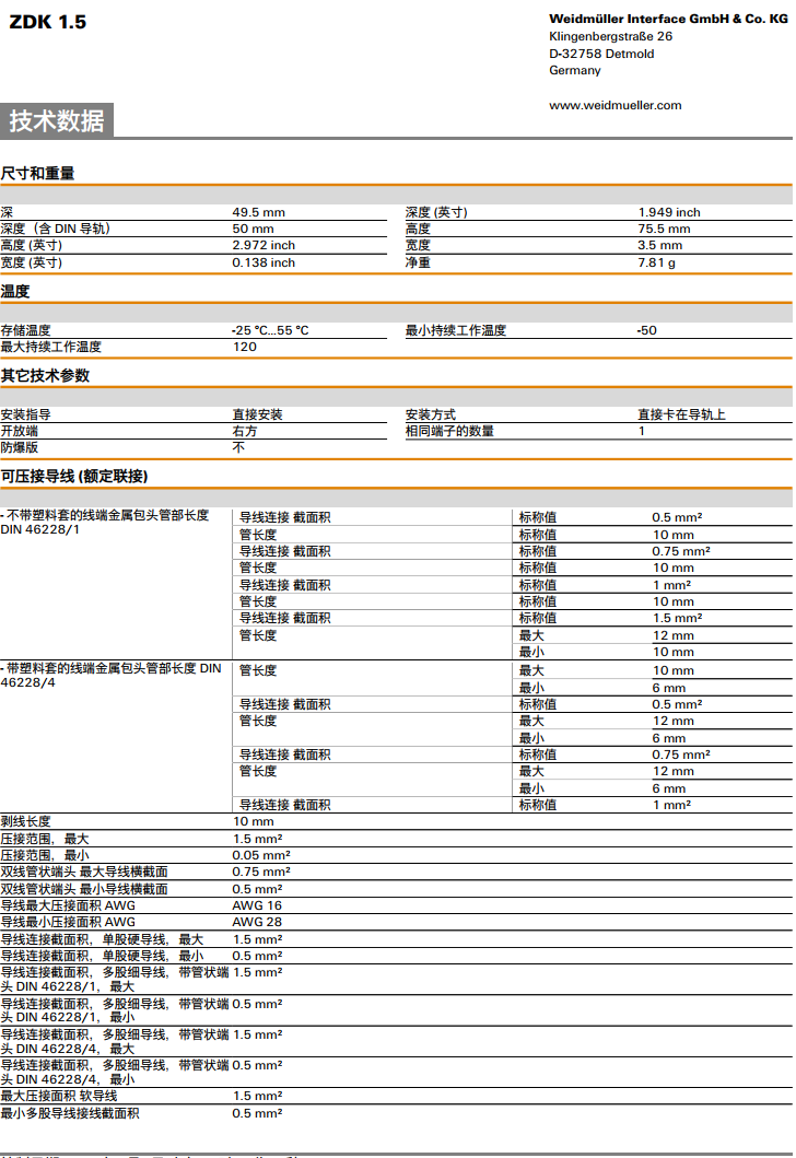 Weidmuller ZDK 1.5 魏德米勒 直通型接線端子 訂貨號1791100000 |