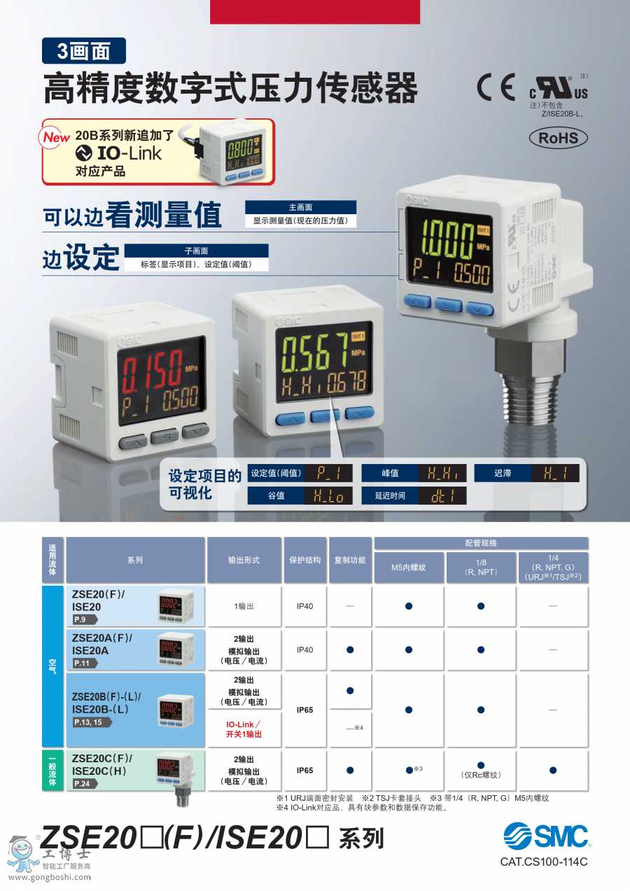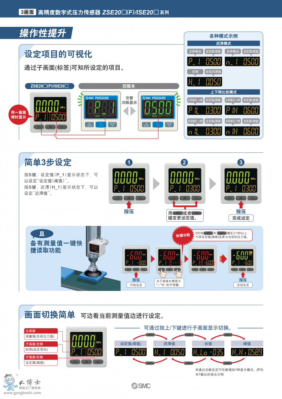 ZSE20(F)/ISE20 SMC 3畫面高精度數字式壓力開關