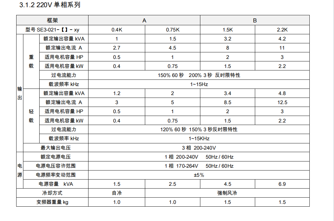 功率0.4KW-15KW)替換SE2-023(電壓3相220V功率0.4KW-7.5KW)