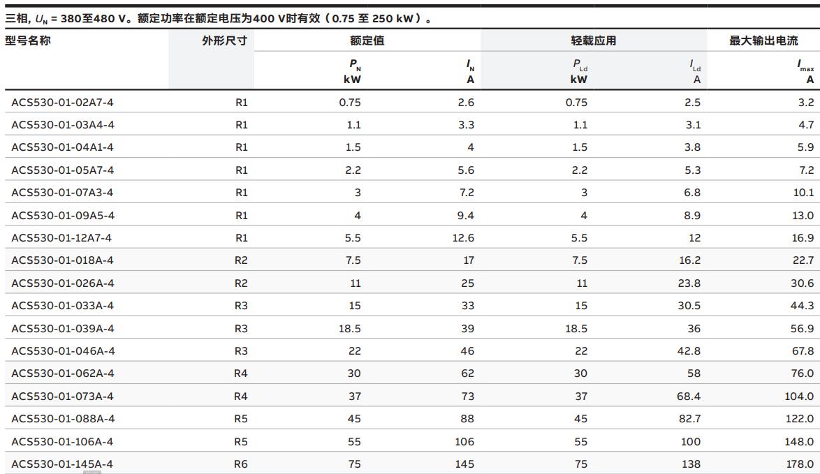 ACS530 R1-R9, 0.75 至 250 kW