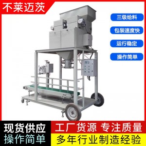 山東不萊邁茨顆粒包裝機用于復合肥顆粒肥料的全自動/半自動包裝,使用塑料編制袋,自動套袋/人工套袋,自動夾袋、計量、充填、落袋、輸送、縫包,完成半自動包裝過程。