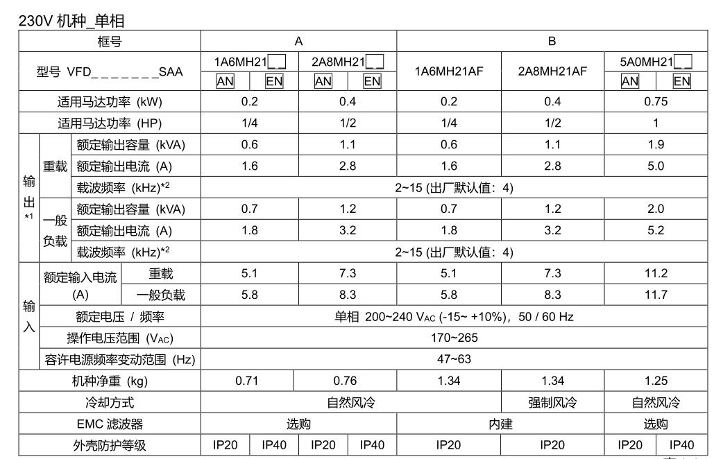 過載能力高達 150% / 60 秒、200% / 3 秒,適用于各種定轉矩負載