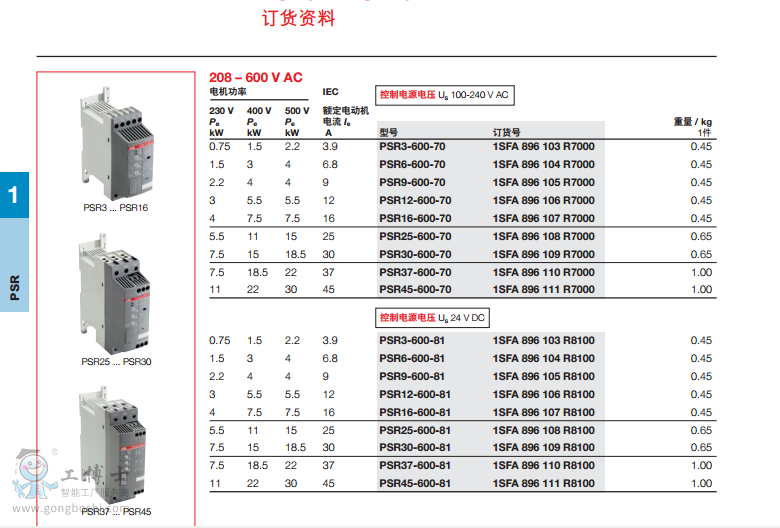 ABB軟啟動器   PSR系列