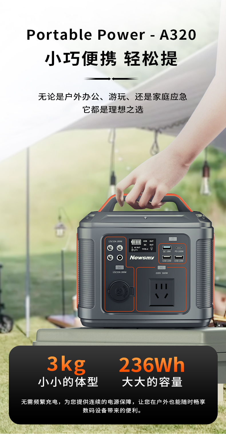 Newsmy紐曼戶外儲能電源A320 236Wh/300w 小巧便捷