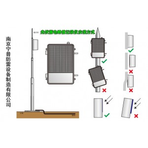 7、產(chǎn)品使用太陽能供電,安裝位置應(yīng)無物體遮擋陽光,光伏板正對(duì)南面且光伏板朝向太陽。