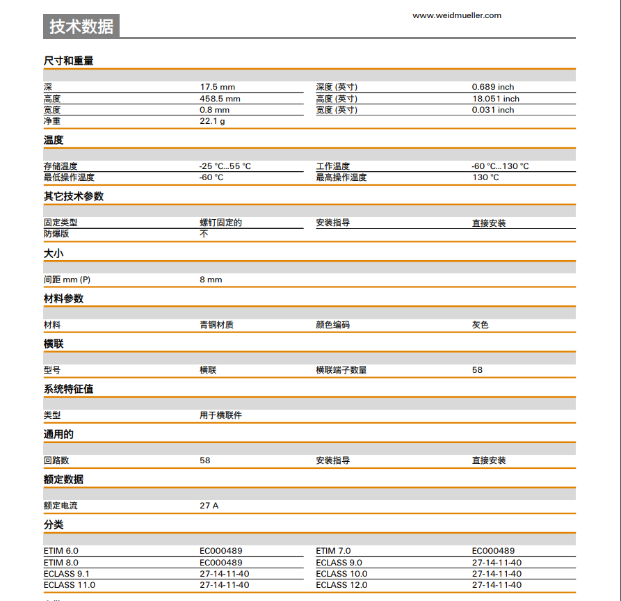 Weidmuller QB 58/8/9/WI 魏德米勒 橫聯(lián)件 訂貨號(hào) 0545300000 |