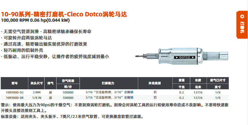 10-90系列-精密打磨機(jī)-Cleco Dotco渦輪馬達(dá)10R9000-03/10R9000-08