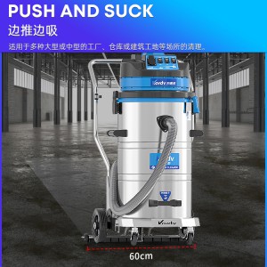 DL-3078P是一款干濕兩用型工商業吸塵器,有3顆馬達,可單獨或同時開啟;集塵桶為80L,不銹鋼材質,配有60cm寬的推吸扒頭,可以邊推邊吸。配有手動晃動振塵,在使用的過程中,左右晃動振塵手柄就可以清理塵隔上的灰塵。新款不銹鋼車架,美觀結實,在移動時輕巧方便,并具有收納配件功能。