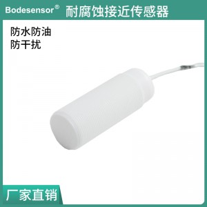 耐強酸堿腐蝕型接近傳感器,圓柱形安裝,PTFE一體化耐腐蝕型接近開關
