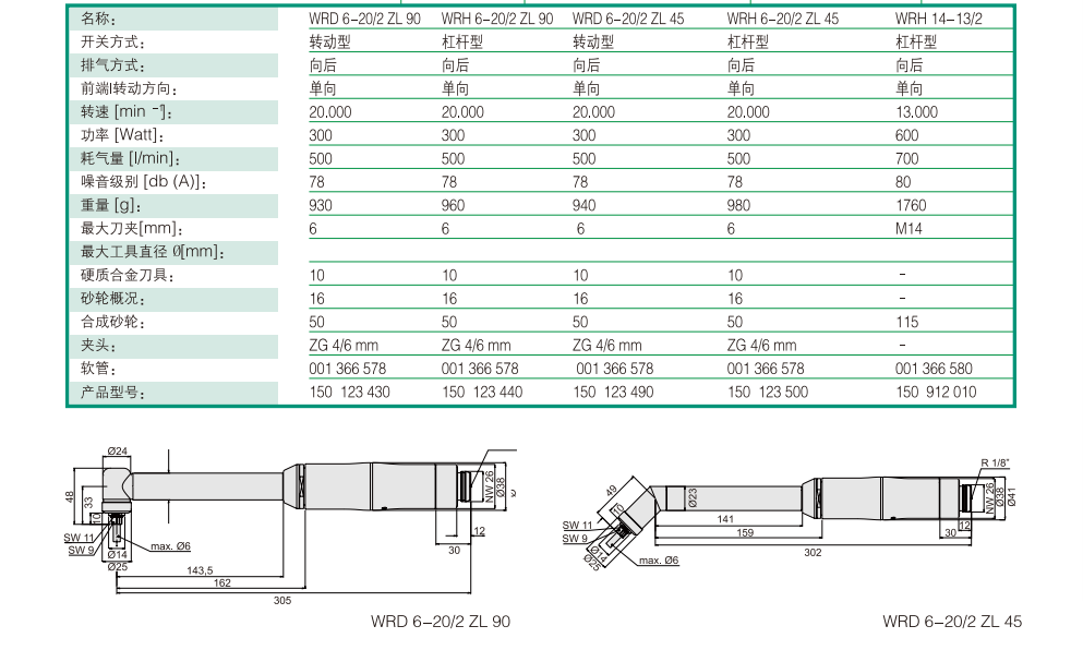 角磨機型號:WRD 6-20/2 ZL 90