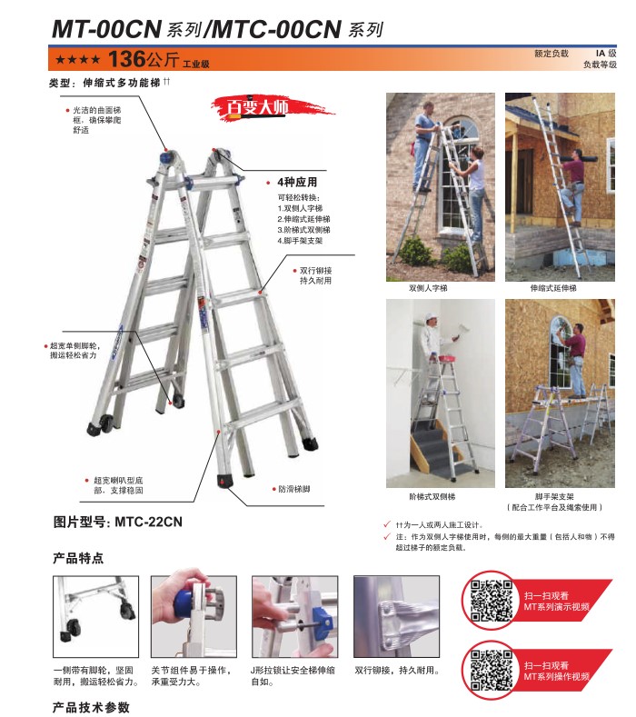 穩耐Werner鋁合金伸縮式多功能梯MT-13CN--穩耐梯子