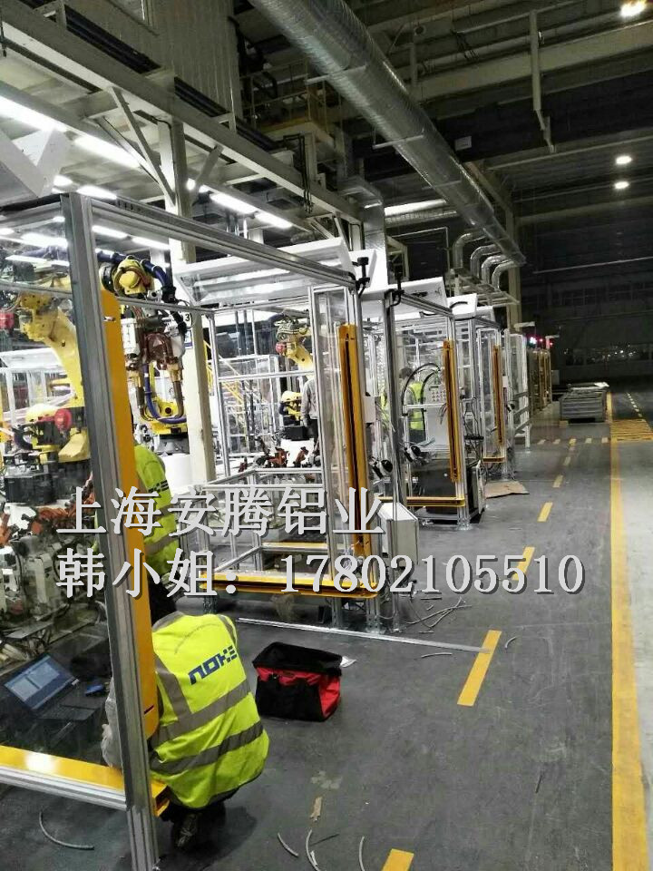 上海安騰鋁業韓小姐 專業承接汽車生產流水線安全圍欄,機器人弧焊房,機器人打磨房等工業防護項目::工業鋁型材框架安全圍欄,機器人弧焊房案例展示: