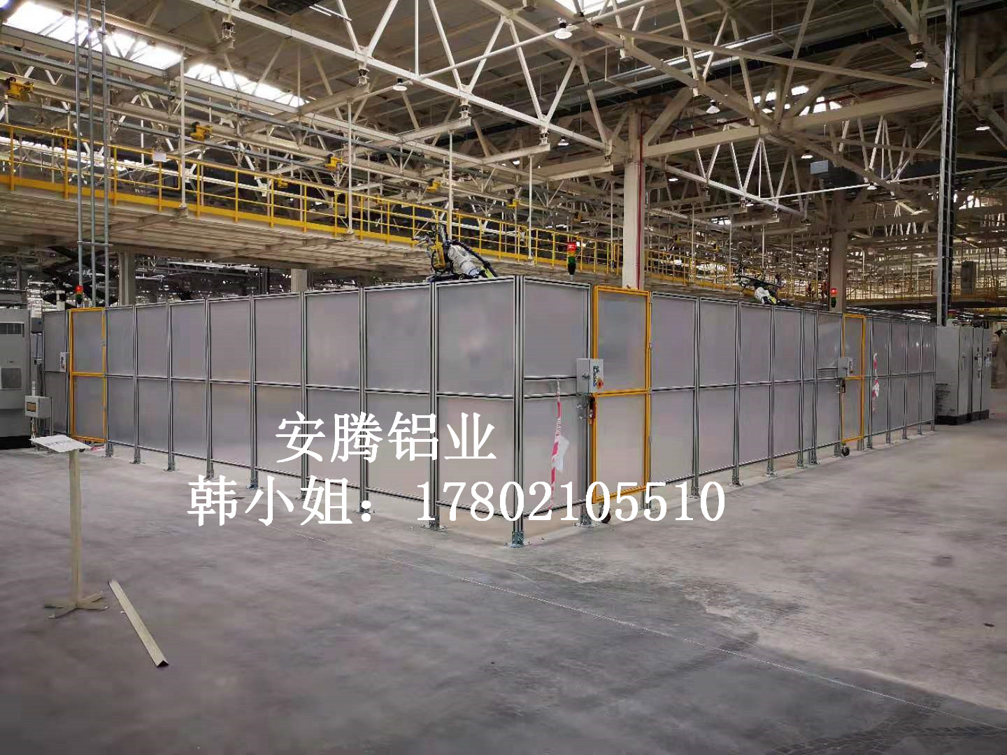 上海安騰鋁業韓小姐 專業承接汽車生產流水線安全圍欄,機器人弧焊房,機器人打磨房等工業防護項目::工業鋁型材框架安全圍欄,機器人弧焊房案例展示: