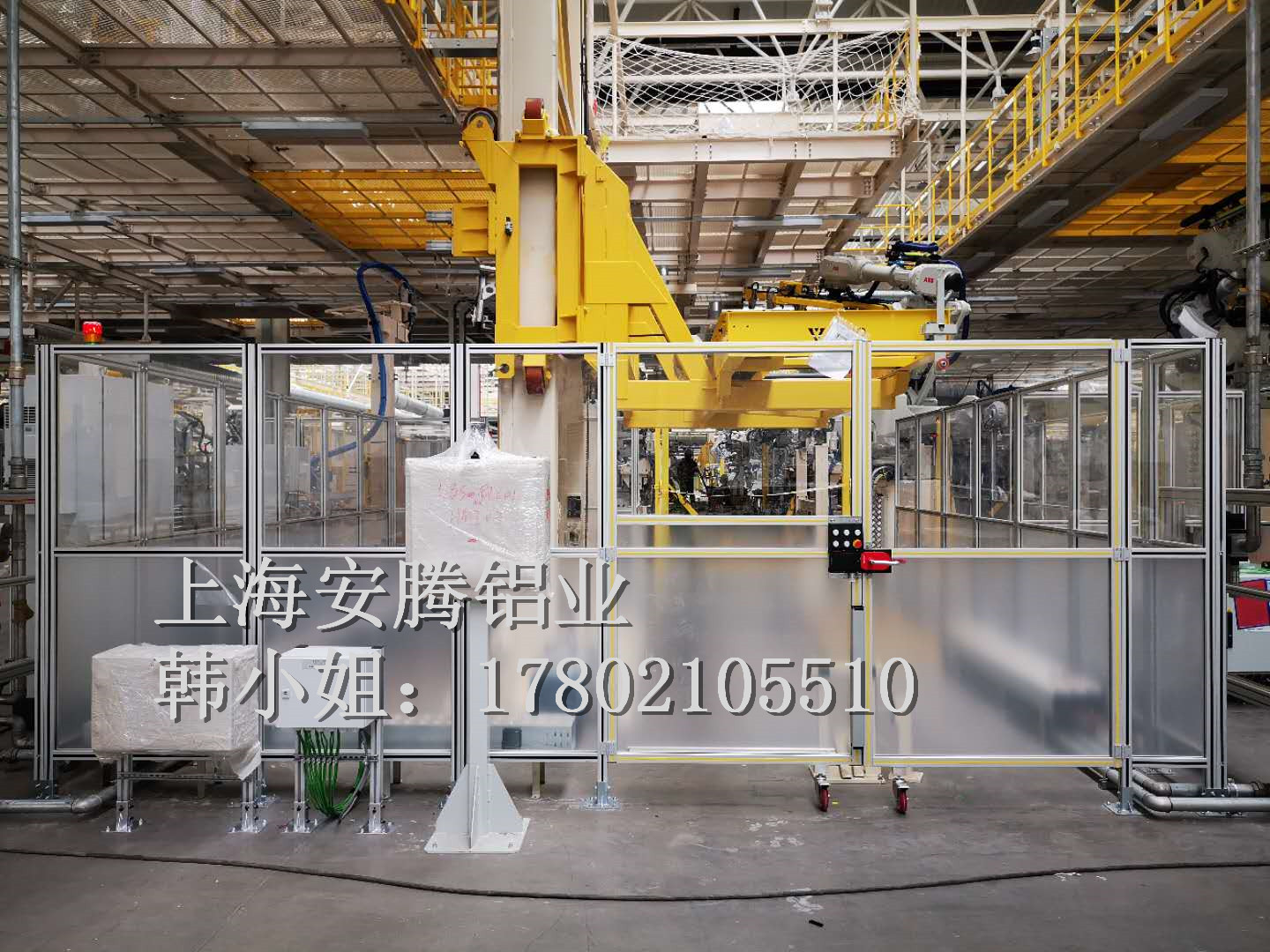上海安騰鋁業韓小姐 專業承接汽車生產流水線安全圍欄,機器人弧焊房,機器人打磨房等工業防護項目::工業鋁型材框架安全圍欄,機器人弧焊房案例展示: