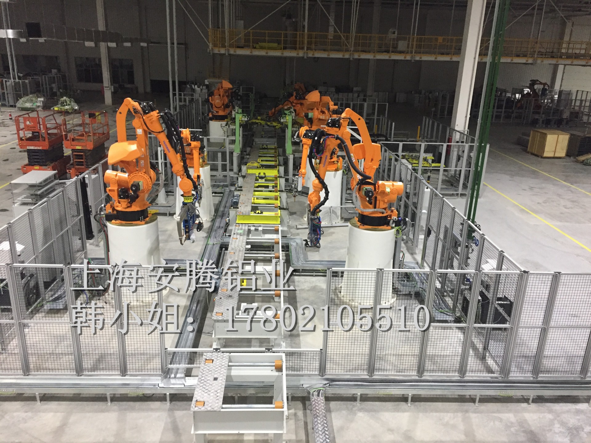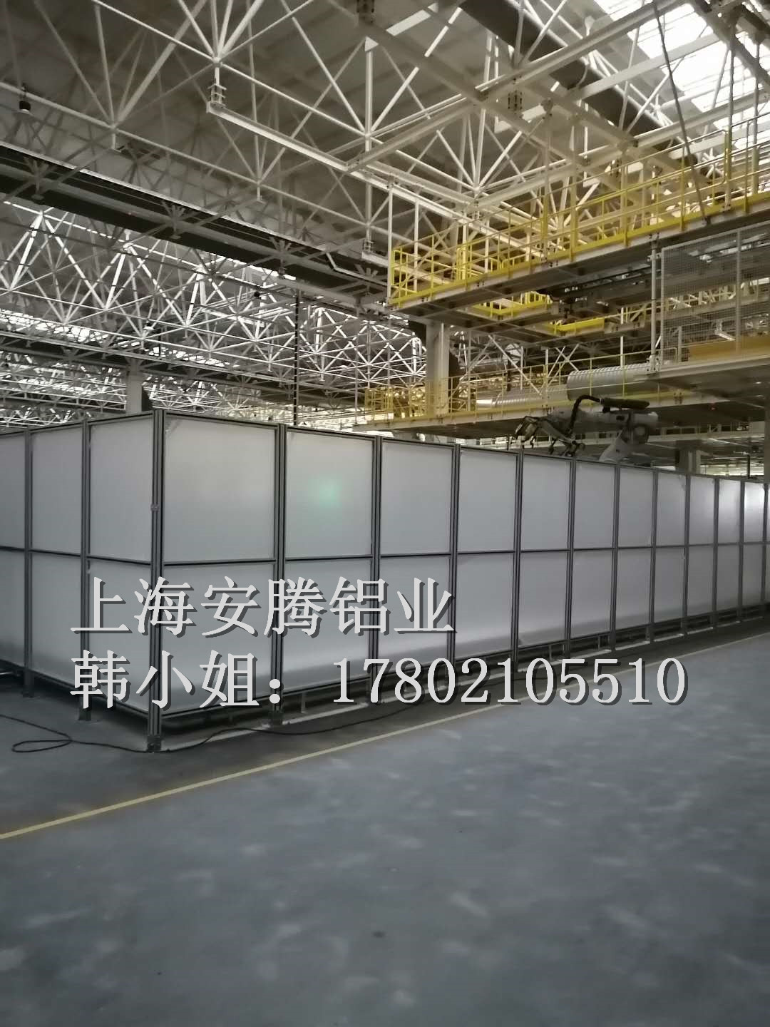 上海安騰鋁業韓小姐 專業承接汽車生產流水線安全圍欄,機器人弧焊房,機器人打磨房等工業防護項目::工業鋁型材框架安全圍欄,機器人弧焊房案例展示: