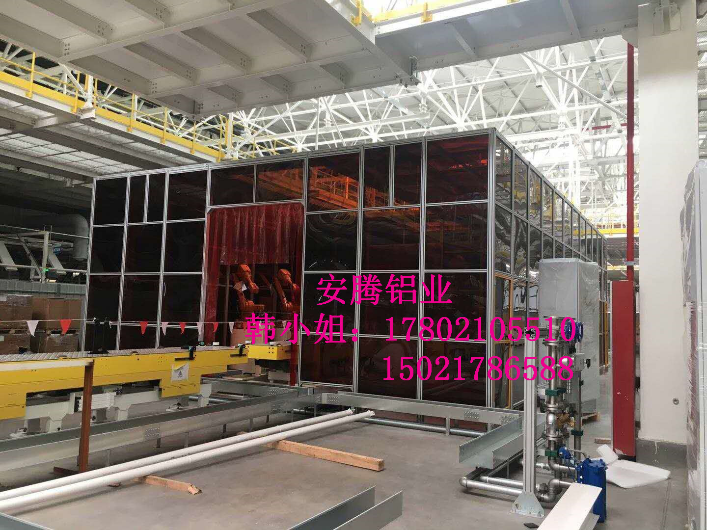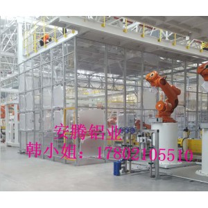 上海安騰鋁業(yè)韓小姐 專業(yè)承接汽車生產(chǎn)流水線安全圍欄,機器人弧焊房,機器人打磨房等工業(yè)防護項目::工業(yè)鋁型材框架安全圍欄,機器人弧焊房案例展示: