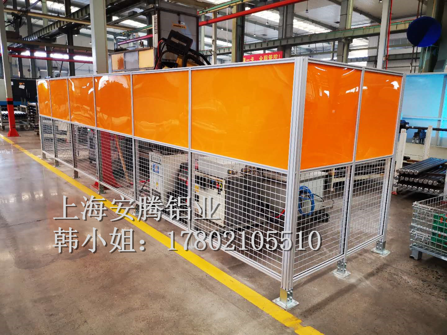 上海安騰鋁業(yè)韓小姐 專業(yè)承接汽車生產(chǎn)流水線安全圍欄,機(jī)器人弧焊房,機(jī)器人打磨房等工業(yè)防護(hù)項(xiàng)目::工業(yè)鋁型材框架安全圍欄,機(jī)器人弧焊房案例展示: