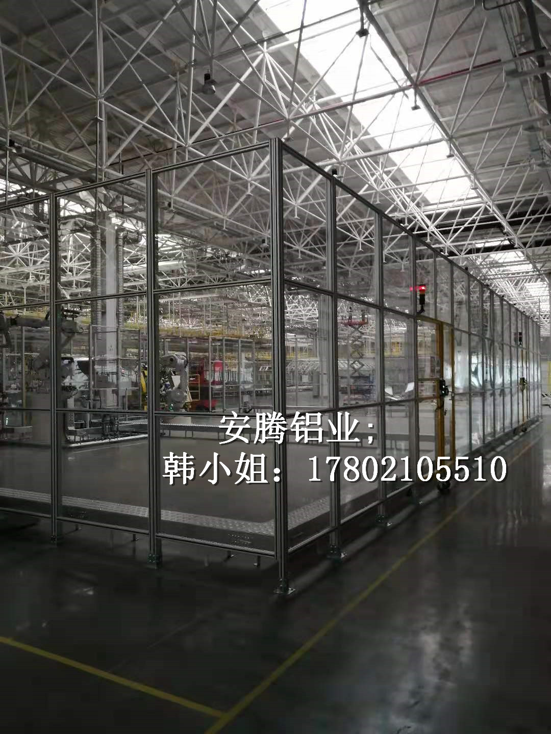 上海安騰鋁業韓小姐 專業承接汽車生產流水線安全圍欄,機器人弧焊房,機器人打磨房等工業防護項目::工業鋁型材框架安全圍欄,機器人弧焊房案例展示: