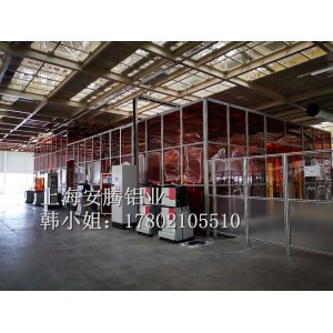 上海安騰鋁業韓小姐 專業承接大型機床,機械,智能裝備,汽車生產流水線機器人安全防護圍欄,機器人弧焊房,機器人除塵房;打磨房等大型工業機械設備防護項目: